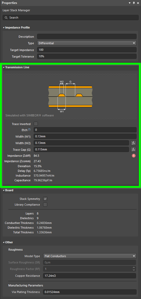I am calculating the impedance of the IWR6843AOPEVM PCB using the available layout and stackup information. However, when I calculate the impedance based on the layout parameters using Altium Designer’s Impedance Profile, the calculated impedance does not match the expected impedance of the reference PCB.Could this mismatch be due to the limitations of impedance calculators, such as the use of nominal dielectric constants, simplified field solvers, and the absence of fabrication-specific parameters like copper roughness, solder mask effects, and actual dielectric thickness after lamination?Additionally, is it correct to assume that the impedance of a fabricated reference PCB cannot be accurately reverse-calculated using layout dimensions alone, and that the original design impedance was likely tuned using the PCB manufacturer’s field solver or post-fabrication measurements?(we are using the PCB version SPRR418A (G version).https://www.ti.com/lit/zip/SPRR418Is it possible that the impedance-related details provided for this PCB are incorrect?I am facing difficulty matching the differential pair impedance based on the given stackup and layout information.Could you please help me calculate and understand the differential pair impedance for this PCB or for the given stackup?Additionally, if I want to set up an accurate impedance profile for this PCB, could you please guide me on how to define it correctly?@QDrives @Robert Feranec